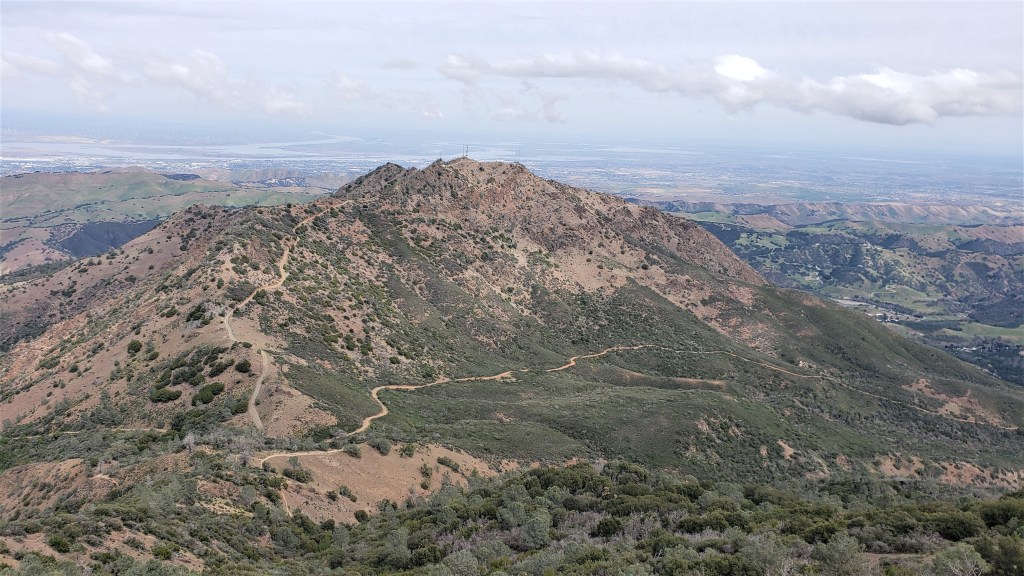 Heading up Juniper Trail, we began the final climb to Diablo’s 3,849′ summit. This went quickly, and we soon reached the summit parking lot. We headed up the observation tower, spent a few minutes eating our sandwiches, then headed back down to the parking lot to refill our flasks again.
