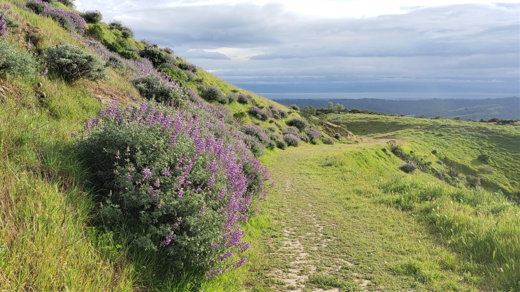 This run was conceived as a way to give Dan a last tour of the East Bay before he moves to Switzerland in June. Dan found a 100-mile route already worked out by someone else: we took the first half with minor changes. We settled on the last weekend in March for several reasons. The East Bay is still green at that time, and the wildflowers are at their peak. It’s a month before the Canyons 100K–which Dan, Megan and I are all doing–and so an ideal time for a long training run. For me, that weekend was the midpoint between the MUC 50M (March 12) and the Lake Sonoma 50M (April 9), so it maximized my recovery time. When it landed right on my birthday, I shamelessly named it Yuch’s Birthday Run and trimmed the distance to 53 miles, one for every year.