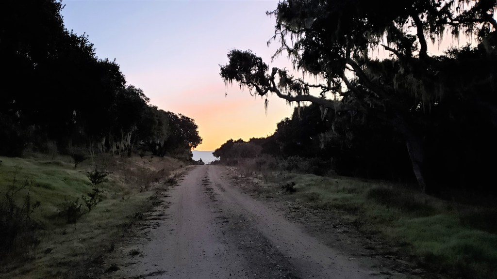 My favorite part of this course is the oak forest in the first ten or fifteen miles. In the early-morning light, the oaks and lace lichen feel ghostly and magical.