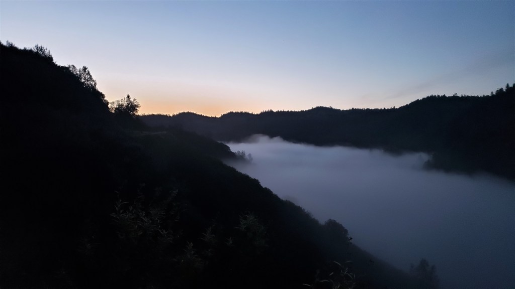 The break was nice, but we couldn’t stay here forever. I hoisted my pack, which weighed a ton. I had a lot of stuff in there: rain jacket, rain pants, base layer, gloves, emergency bivvy, two lights and extra batteries, phone, battery pack to charge the phone, GPS tracker, a bag of stuff that the race had provided and required us to carry at all times, and of course food and water. Aside from one light, food and water, I hadn’t used any of this stuff all race. It seemed like a wasteful burden, but I was stuck with it for now.