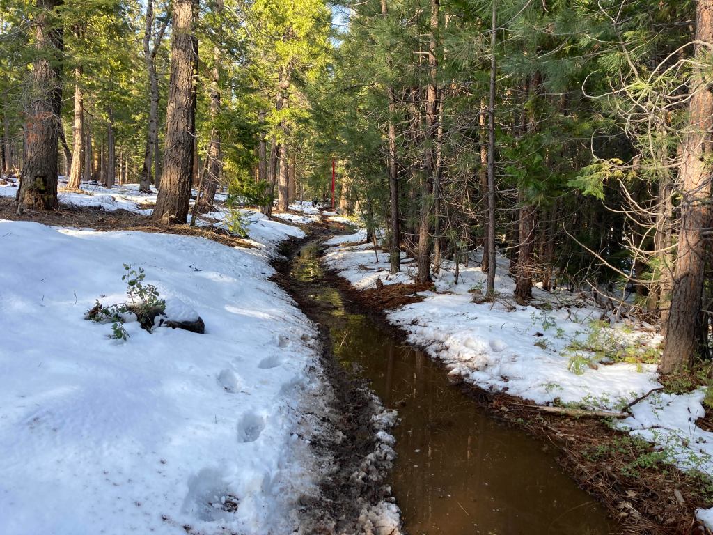 The climb out of the canyon was long and hard, but I expected that and was fine. I did not expect to keep struggling even after reaching the top. I remembered the last few miles being easy and runnable, but that’s not how they felt today. A recent snowfall had transformed those last miles: snow lined the trailsides, and snowmelt formed deep puddles in the trail itself. The options were basically to run through the puddles or go off-trail. I attempted a third approach, using the small strip of dirt between the puddles and the snow. This didn’t work: I immediately slipped and fell into the surprisingly deep puddle and was soaked up to my waist. After that, I alternated between splashing through the mud or trudging through the snow.