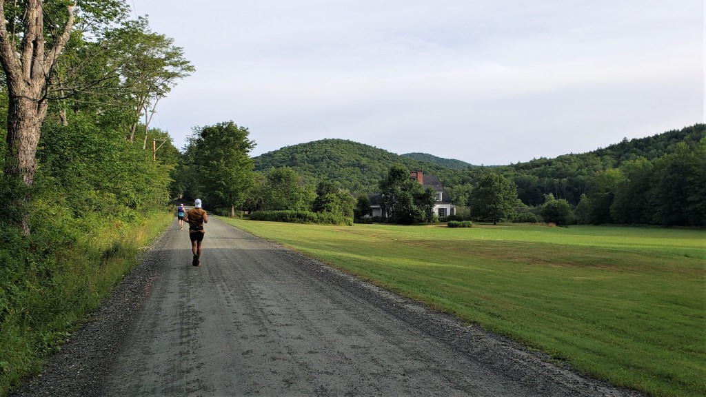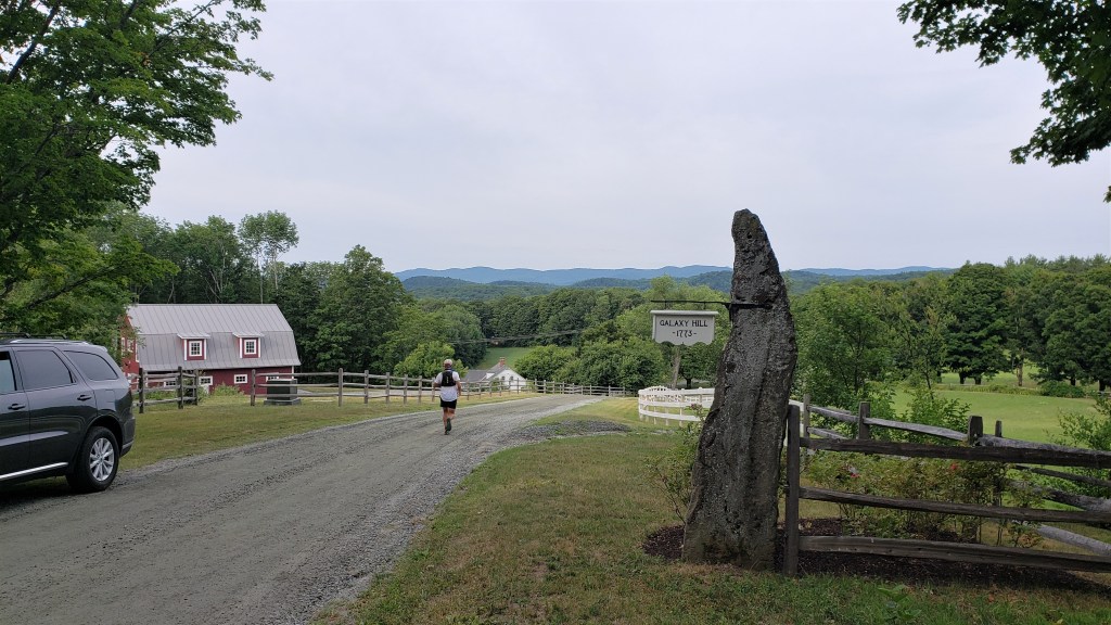 Until now I hadn’t thought much about other runners: my cardinal rule is “run your own race.” However, the out-and-back provided an opportunity to assess my standing, since I’d be able to see anyone ahead of me coming up the hill as I went down. At least, I’d see them if they led me by less than 3.5 miles–the length of the out-and-back–and I doubted anyone was that far ahead. However, although I looked carefully for 100K bibs, I didn’t see any. I didn’t know what to make of that. I doubted I was in first, but I didn’t expect Alex Kramer–who I guessed was the strongest runner there–to be already so far ahead.