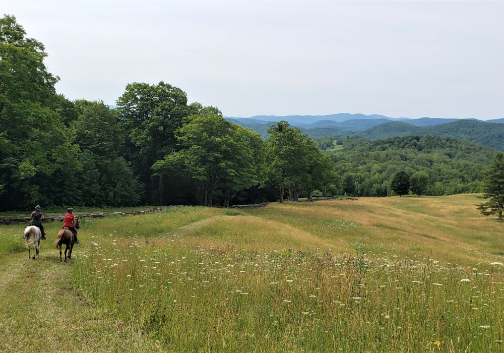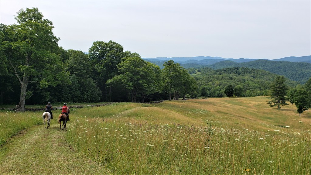 As we left the summit, we were all looking forward to our next leg. Not only were we heading back to (literally) greener pastures, but the next six or seven miles would be varying degrees of downhill: our reward for the brutal climb. We bombed down Summit Trail all the way to Ridge View. I’d never run Ridge View before, but I’d suggested it to limit the route to 53 miles, and it turned out to be a really nice single-track.