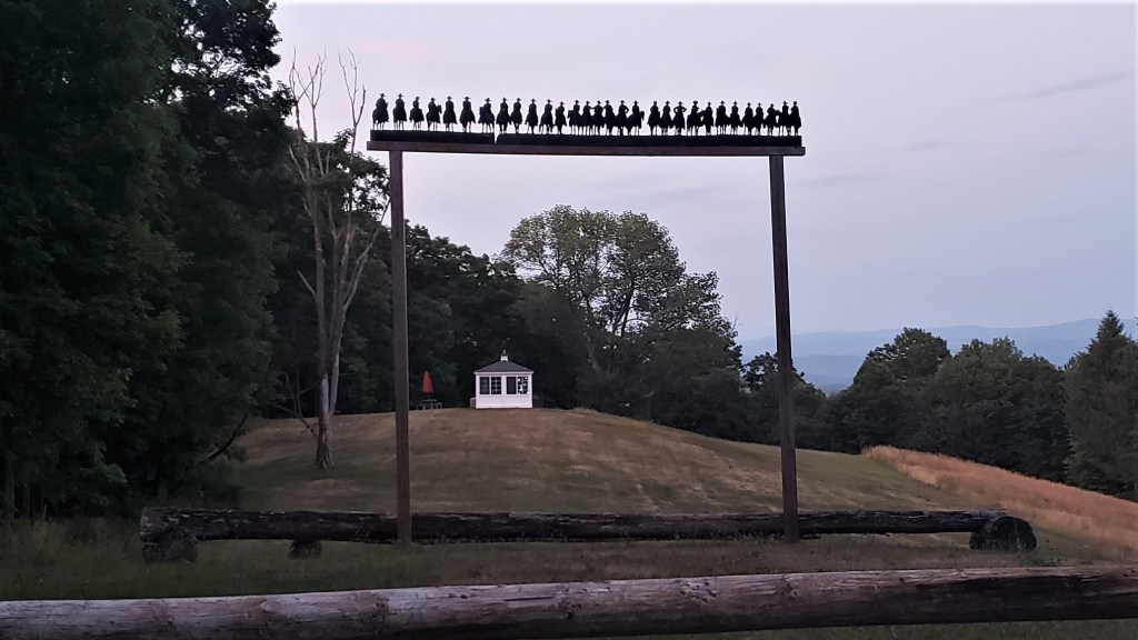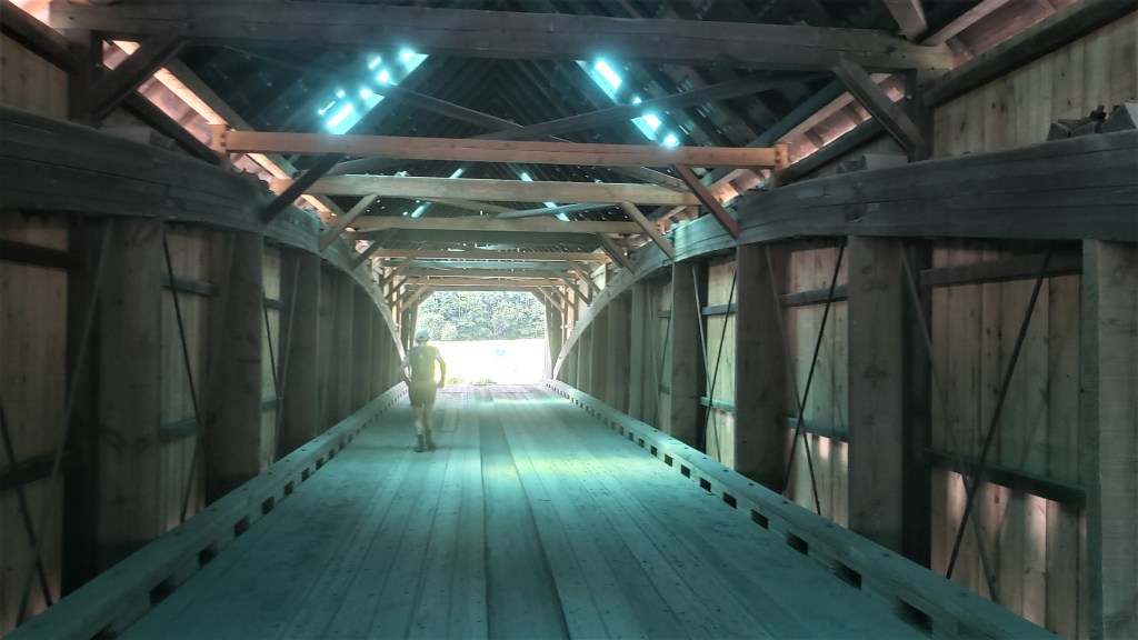 I hit the porta pottie again at Weehawken: my guts hadn’t been doing well for some time. I still had the second quesadilla I’d brought from Ironton but couldn’t stomach it now, so I looked for other fare. I’d been impressed by the aid stations at Hardrock–particularly the ubiquitous selection of vegan soups–but these aid stations were not Hardrock’s. Nothing really appealed to me, so I forced down a couple of pierogies and moved on.
