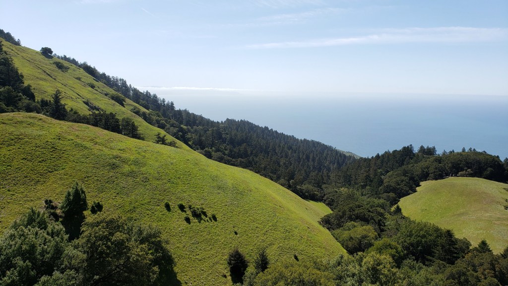 I didn’t see Samantha again until the Deer Park aid station. She was leaving just as I arrived. I gulped some ginger ale and moved on, up Miwok and onto Dias Ridge. I got a big mental lift when I reached the high point of Dias and began the long downhill to Highway 1: a winding stretch with fantastic views toward the coast. I’d also taken a caffeinated Gu, which I reserve for late in the race, and that put some additional wind in my sails.