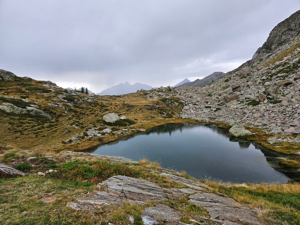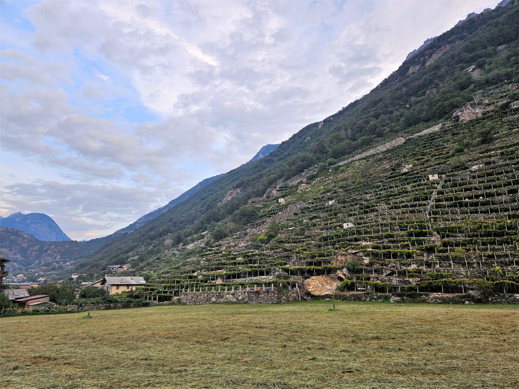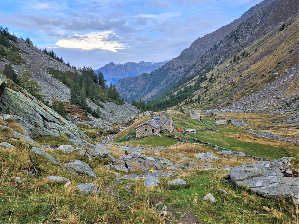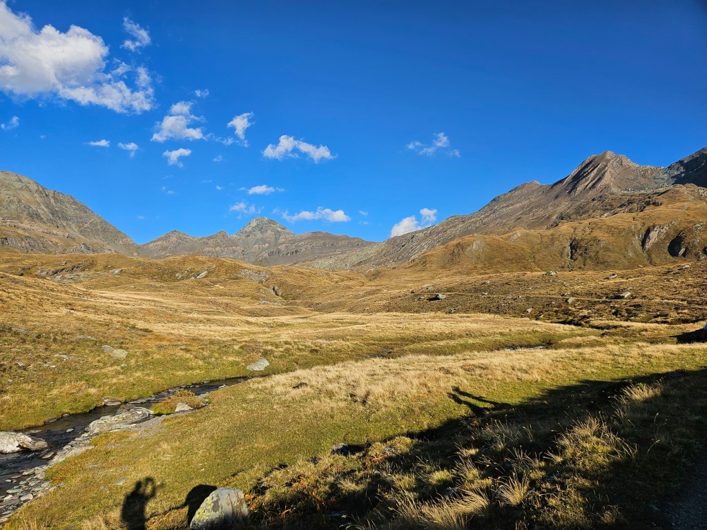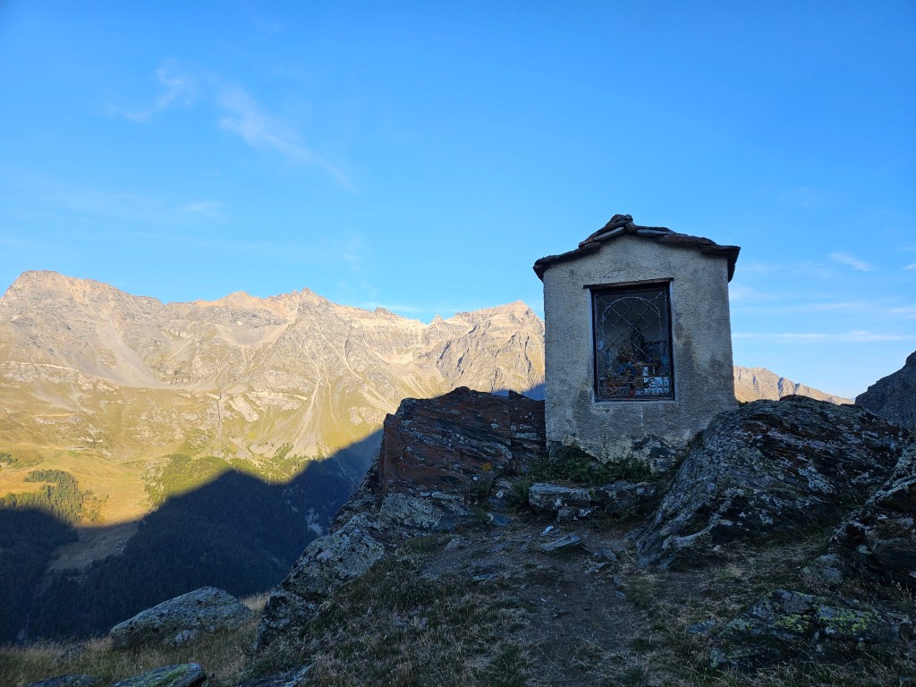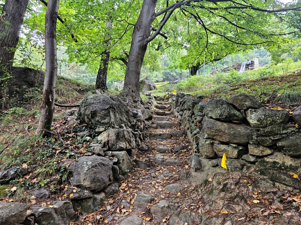 The descent was fun, as descents on fresh legs tend to be. I was, however, having issues with my pack. I’d decided I needed a larger pack for this year’s Tor des Geants, so I was trying out a Salomon Cross Season 15 instead of my usual Advanced Skin 12. I’ve mostly been happy with it, but I’ve noticed that some problems arise when it’s fully loaded (as it was now) and when I’m running as opposed to hiking. The right shoulder binds in ways that cause discomfort and chafing, and no amount of fiddling seems to fix this. I think the problem is that my body is asymmetric (right shoulder larger than left), and this pack’s water-resistant material doesn’t stretch to accommodate my asymmetries. The threat of chafing worried me, but there wasn’t much I could do right now, so I tried to ignore it.
