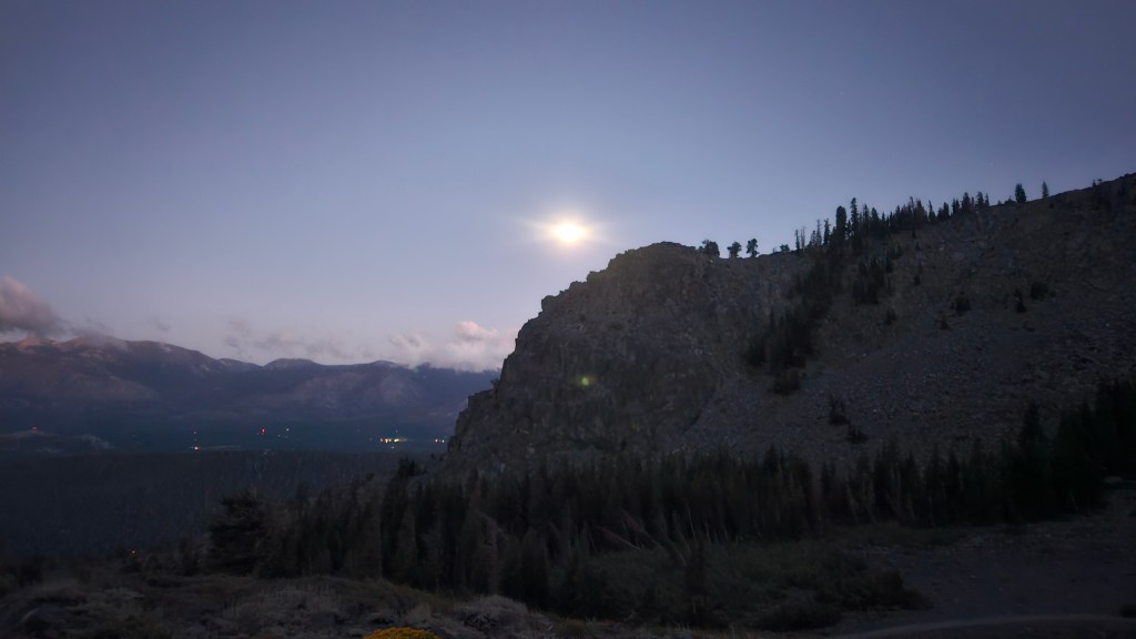 That said, it was pretty hard. Like most other parts of the course–the endless talus of the Ralston-to-Echo ridge, the ravine to Cathedral, the descent from Jack’s–it just went on way too long. The moon was only a crescent, but at some point there was enough moonlight to make out the final peak–and the two climbs before it. Knowing you’d have to climb those rocks, descend down the other side, and climb again was demoralizing. I suppose the lesson is that there’s no easy route.