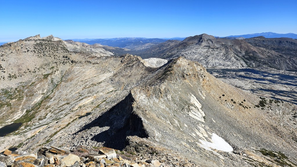 Fourth, however, I kind of liked the ridge. It was what I expected: a ton of bare granite slabs free of talus or brush. There were difficult sections, but for much of the ridge you could move easily and quickly–and this was a welcome change. So while I’m not sure I’d take this route again, it had its charms.