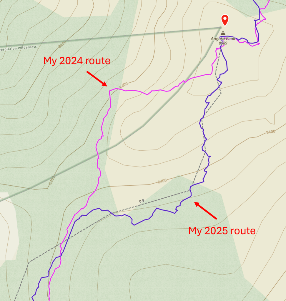 Second, this year I correctly approached Angora by going east of the false summit rather than west: